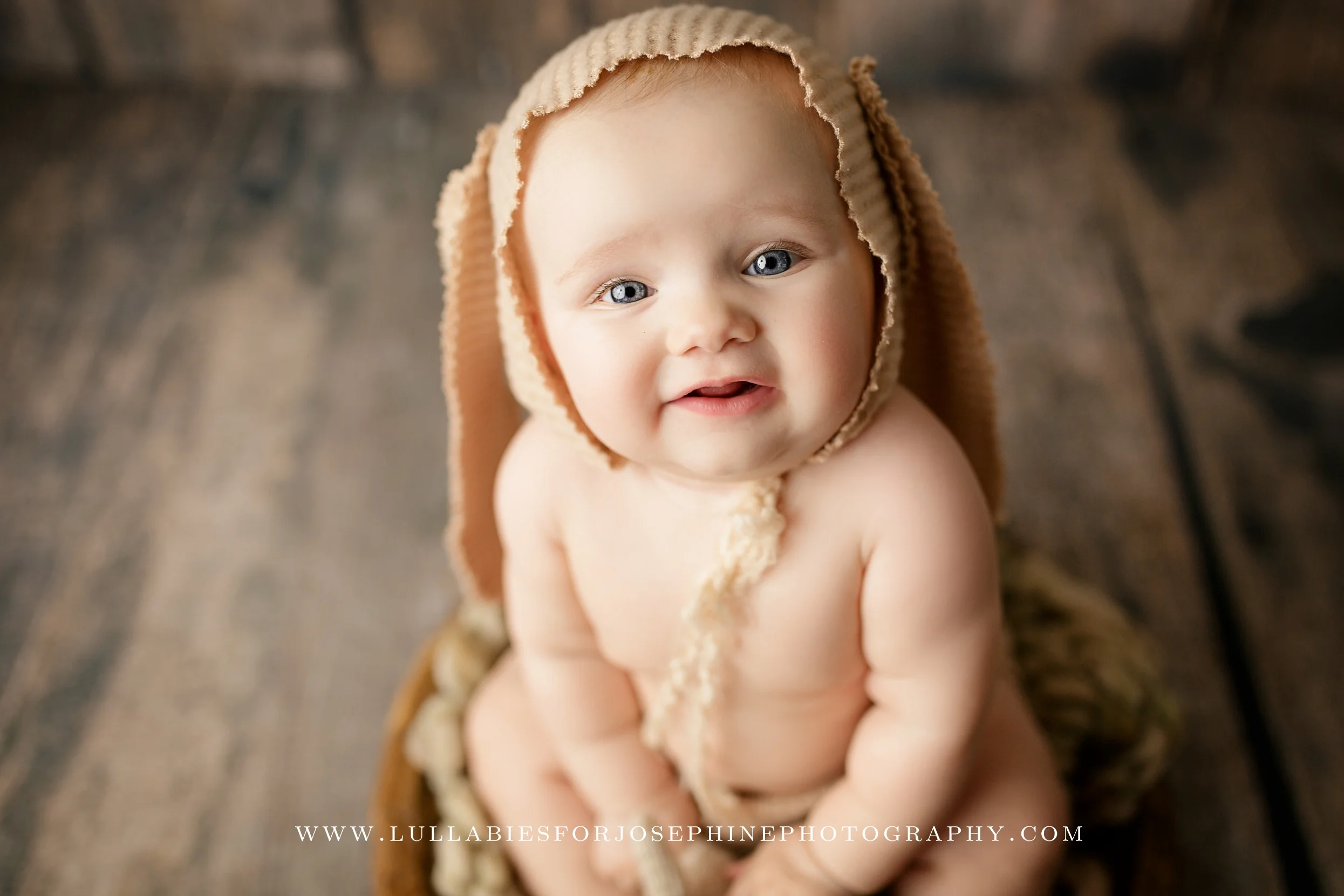 Baby DJ is such a handsome baby boy! Mom wanted to work with tones of blue and neutral rustic colors. I couldn’t resist to used this amazing wrap and hat set made by girl Farm Girl Knitting Props. Love her! It was just perfect and Dylan looks all snuggled up and cozy!